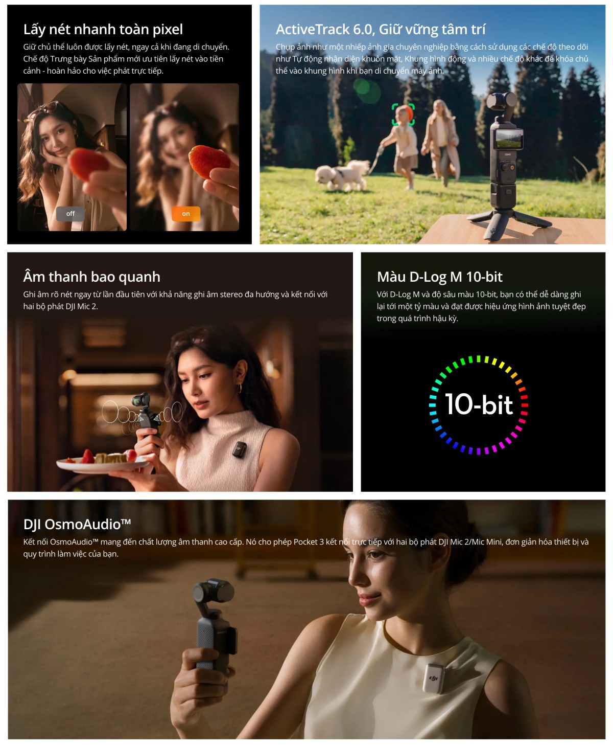 DJI Osmo Pocket 3 Creator Combo quay chụp siêu chân thực tính năng màu D-Log M 10 bit