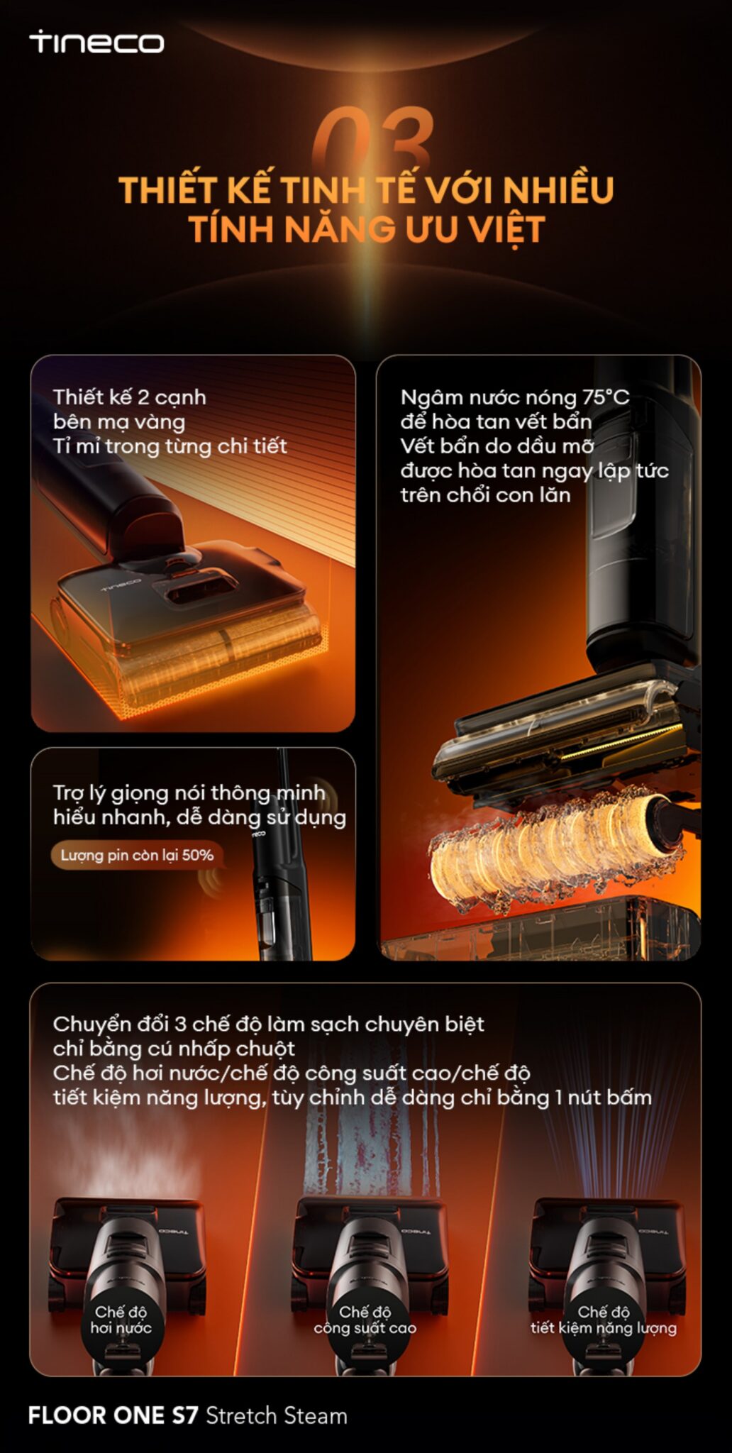 Ưu điểm nổi bật của máy hút bụi lau nhà Tineco Floor One S7 Stretch Steam