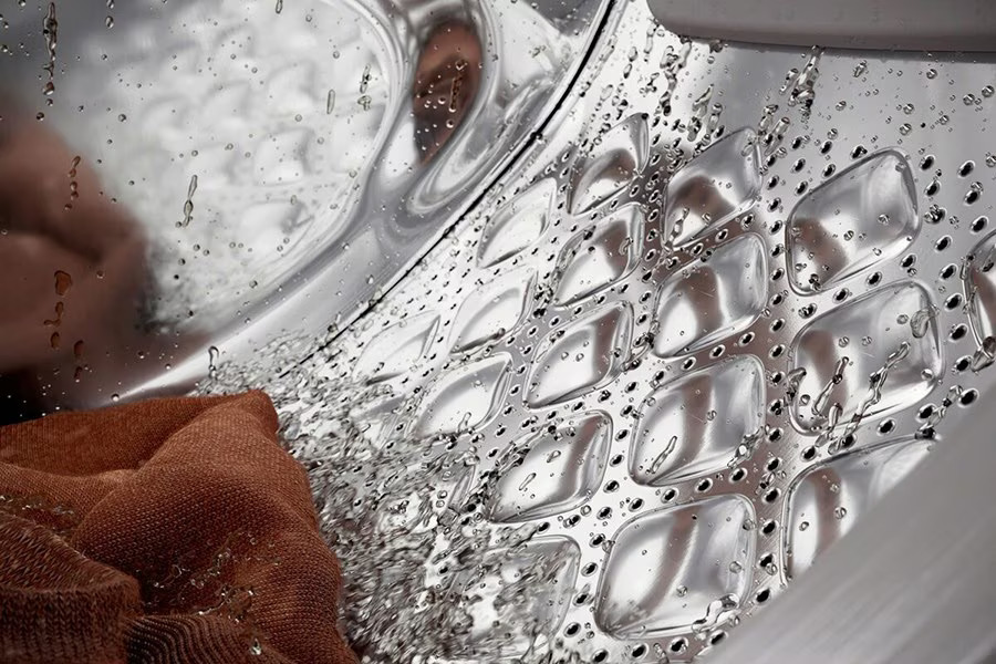 Lồng giặt CareDrum được thiết kế với các gờ nâng và hoa văn dạng thoi, tạo chuyển động nhẹ nhàng trên lớp đệm nước, giảm ma sát và bảo vệ sợi vải tối đa. Điều này đặc biệt quan trọng với các chất liệu dễ hư tổn như lụa, len hay cotton cao cấp, giúp kéo dài tuổi thọ của quần áo.