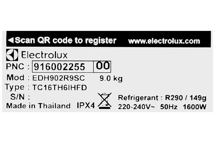 Máy sấy bơm nhiệt Electrolux 9 kg EDH902R9SC