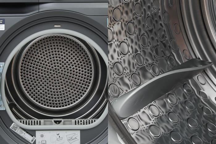 - Tích hợp đèn trong lồng sấy giúp người dùng dễ quan sát bên trong, tránh bỏ sót đồ nhỏ như tất hoặc đồ trẻ em sau khi sấy.