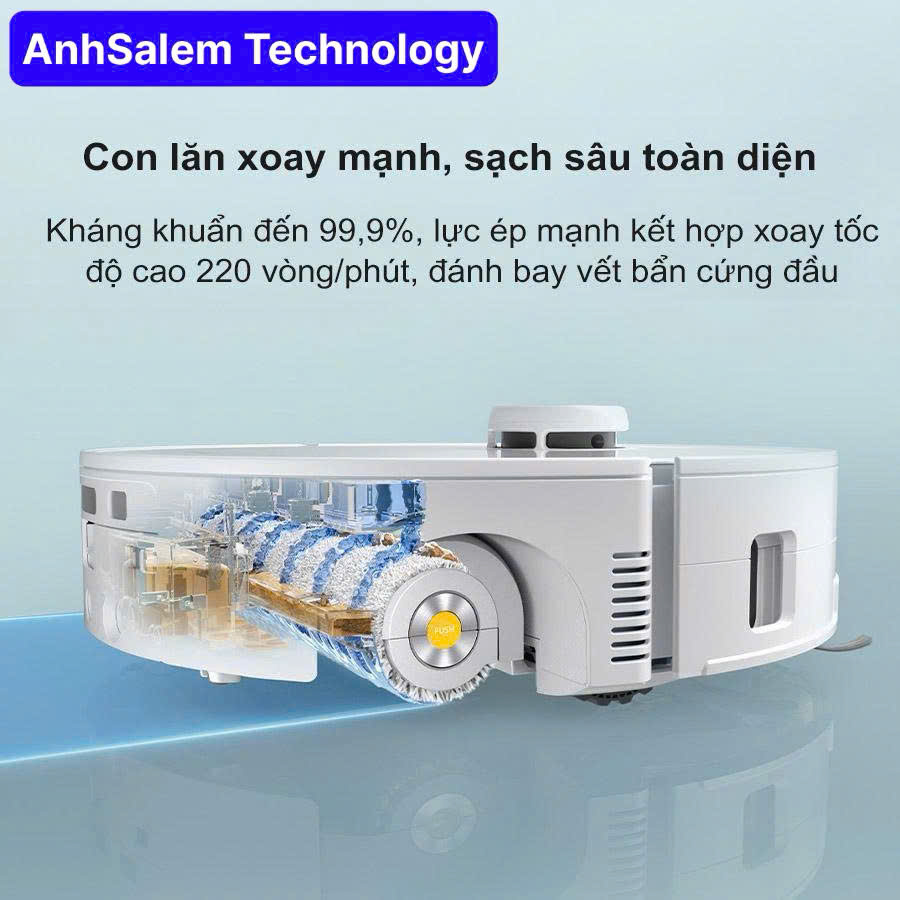 Người dùng có thể thiết lập chế độ khu vực lau riêng với diện tích 4m², cho phép robot tập trung làm sạch kỹ lưỡng tại những vị trí bẩn nhiều như dưới bàn ăn hoặc khu vực bếp. Kết hợp chổi chính và chổi cạnh đồng thời, robot dễ dàng gom rác ướt, thức ăn rơi vãi và bụi bẩn một cách chính xác.