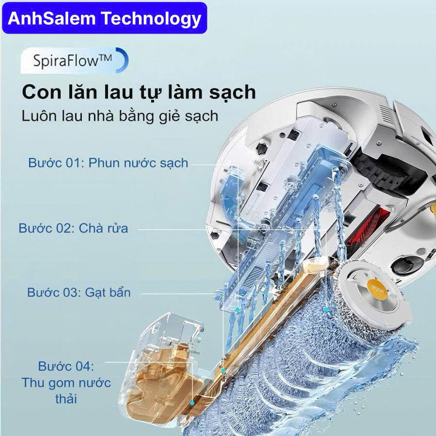 Hệ thống cụm con lăn SpiraFlow™ làm sạch 4 bước toàn diện