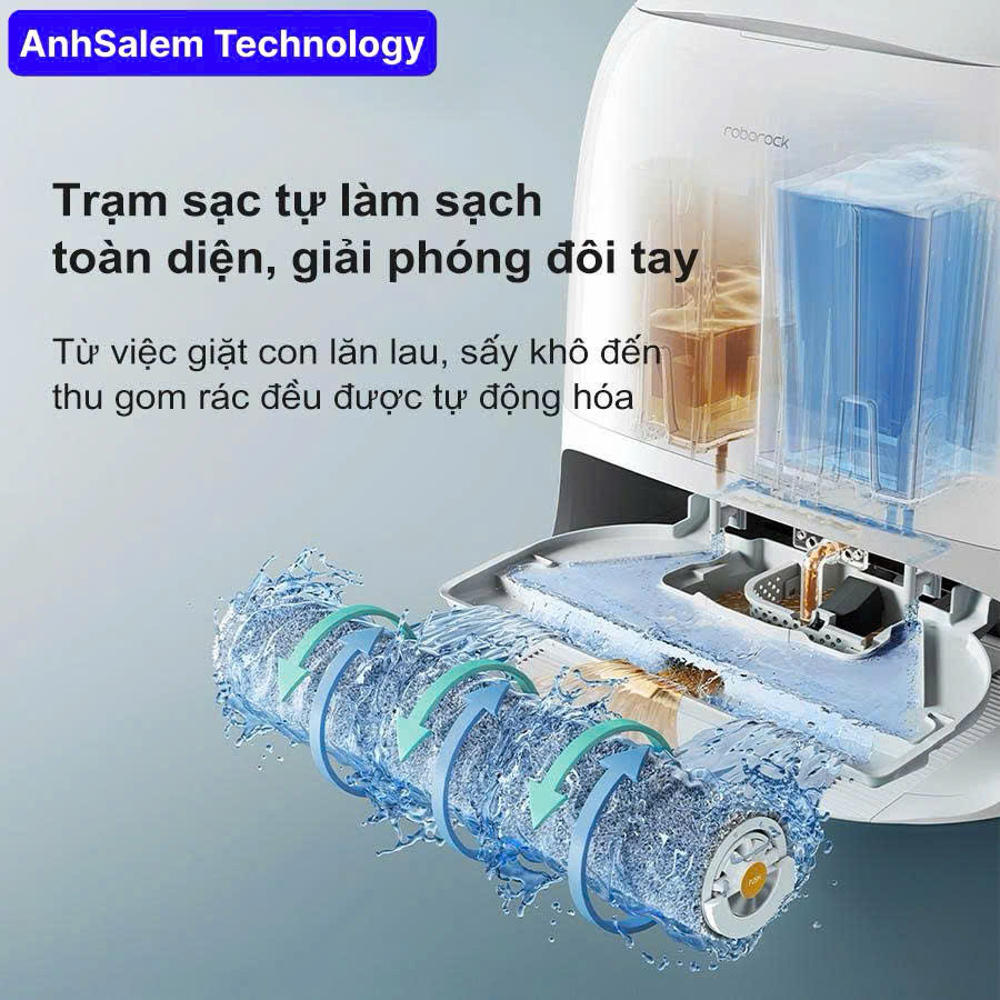 Roborock Qrevo Curv 2 Flow đi kèm trạm tự làm sạch thế hệ mới, giúp người dùng không còn lo những công việc vệ sinh phức tạp. Hệ thống tách riêng nước sạch, nước bẩn, cụm khăn lau được chà rửa bằng cơ chế xoay hai chiều kết hợp thanh gạt áp lực. Quá trình xả, hút và làm sạch diễn ra tuần hoàn, đảm bảo khăn lau luôn trong trạng thái sạch sẽ và sẵn sàng cho lần sử dụng tiếp theo.
