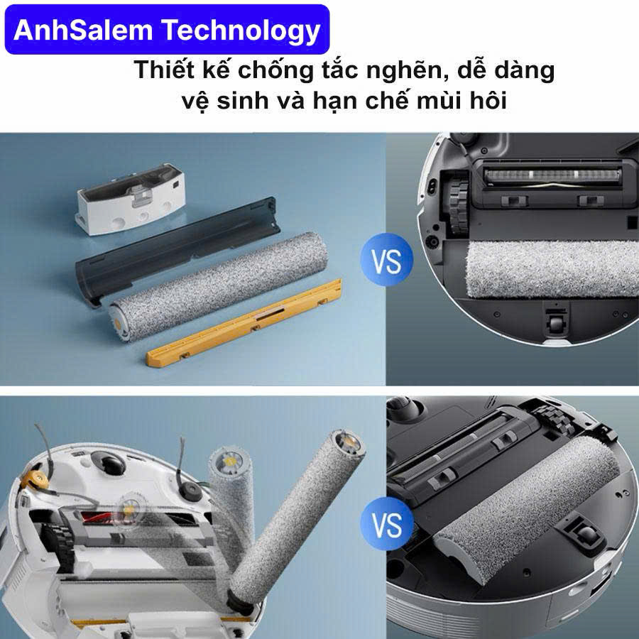 Chổi lăn lật mở: Có thể gập lật để làm sạch khoang đáy và con lăn, tránh tích tụ rác thải hoặc mùi khó chịu.