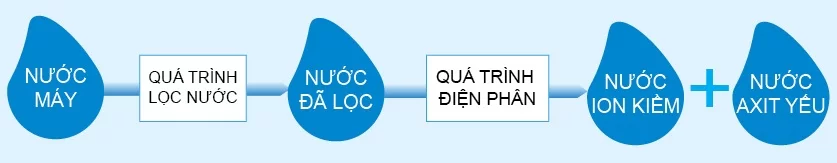 | Chế độ làm việc | • Điều khiển hoàn toàn tự động (digital) • Hệ thống có các tùy chọn mức Alkaline cho nhiều mục đích sử dụng khác nhau • Chế độ tạo nước acid dùng để chăm sóc da mặt • Chế độ tạo nước tinh khiết dùng để uống thông thường, pha sữa cho trẻ em … • Chế độ cảnh báo dòng chảy • Chế độ báo hiệu thay cục lọc • Chế độ tự làm sạch hệ thống • Chế độ khôi phục cài đặt gốc |