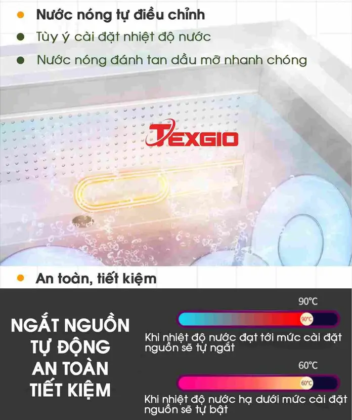 Dựa trên sóng siêu âm mạnh với tần số cao, sử dụng Máy Rửa Bát Texgio Ultrasonic có thể tiêu diệt trực khuẩn thương hàn, tụ cầu khuẩn, trực khuẩn đại tràng