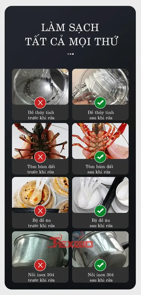 Trên 50oC dễ dàng đánh bay cặn bẩn và dầu mỡ