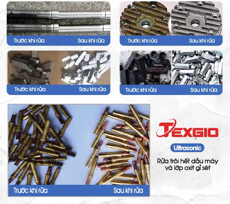 Công nghệ Texgio Ultrasonic còn được ứng dụng để làm sạch dầu máy, gỉ sét của linh kiện, phụ tùng..