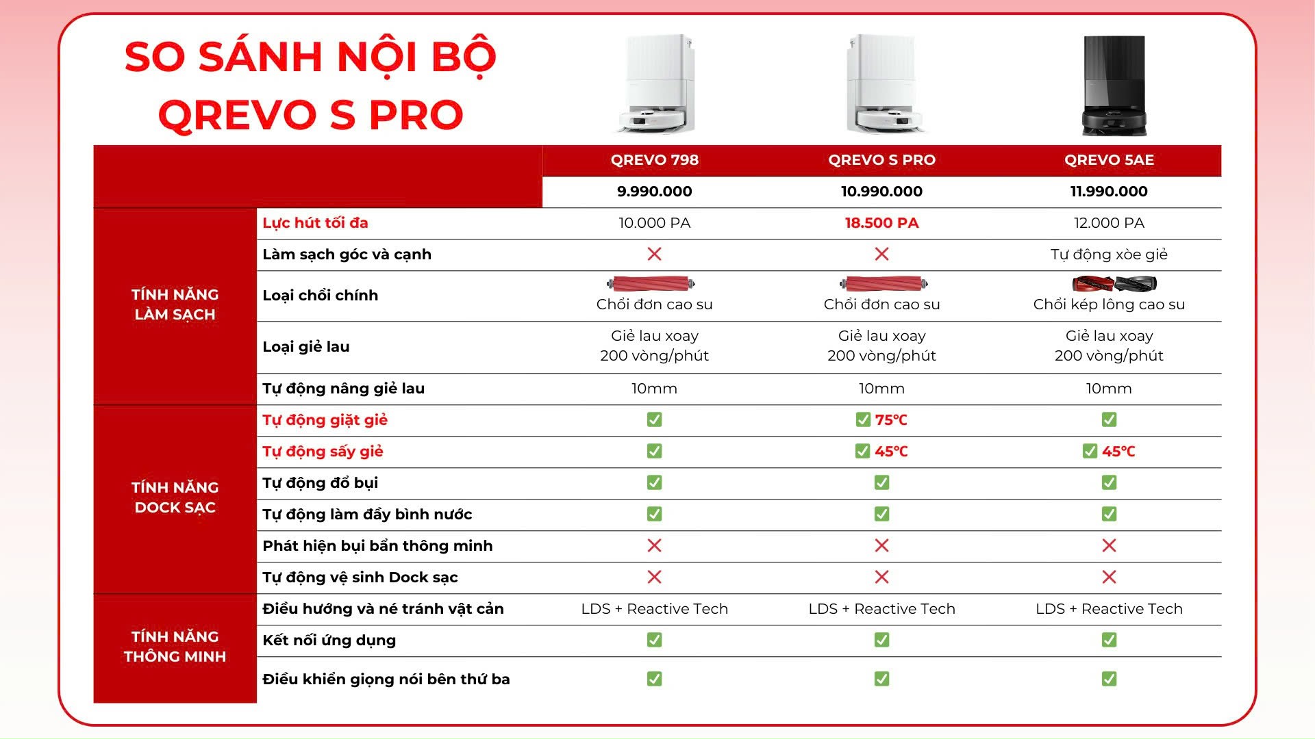 Các bạn có thể hiểu nó là bản Q Revo S năm xưa nhưng thêm chức năng giặt nước nóng, lực hút tăng lên 18500Pa như 5V1 hay C Pro...- Tuy nhiên vẫn là bản thể của S, là chổi chính cao su và không có xòe giẻ lau chân tường. Là một model cho phân khúc giá thấp. 11 triệu mua em này ngon hơn Q RV 798 nhiều á.