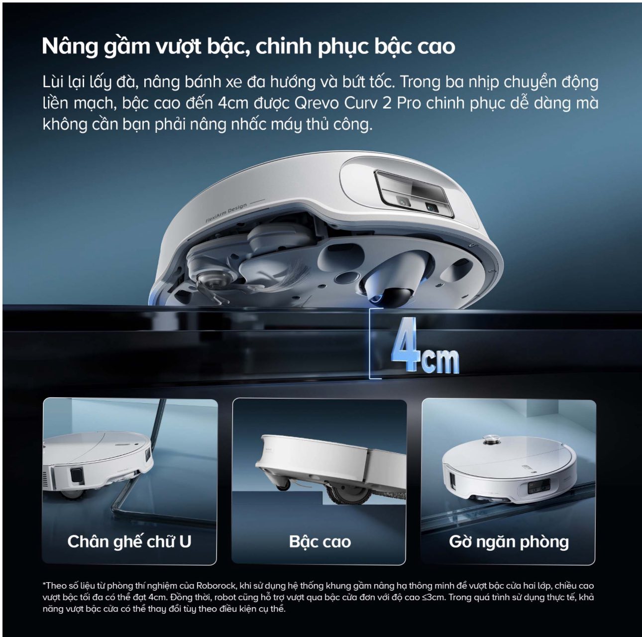 + CurV 2 Pro có chức năng nâng hạ gầm để vượt bậc cao, 10cm (yêu cầu bậc đệm đúng quy cách).